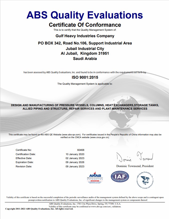 2000 Accreditation for Design and Manufacture of Pressure Vessels, Heat Exchangers, Storage Tanks, Allied Piping, & Structural and Repair Service