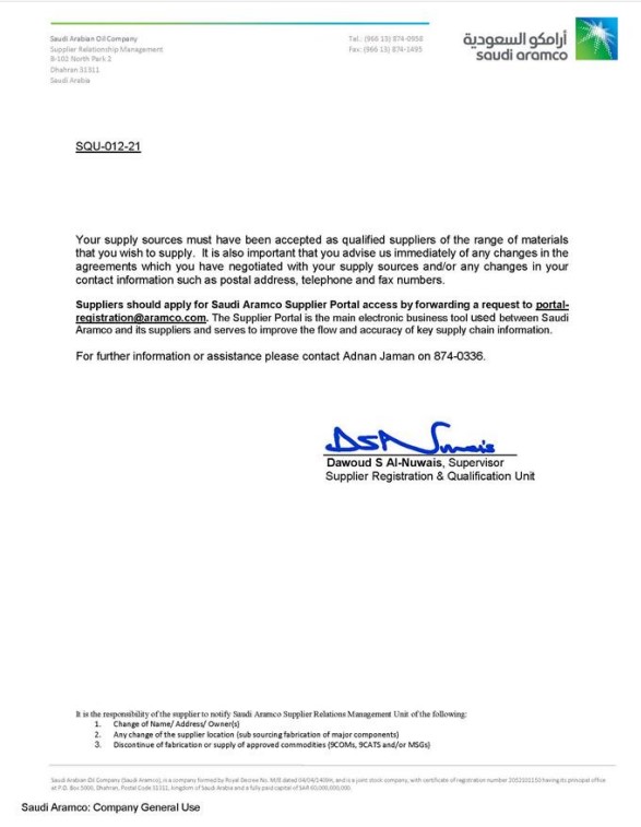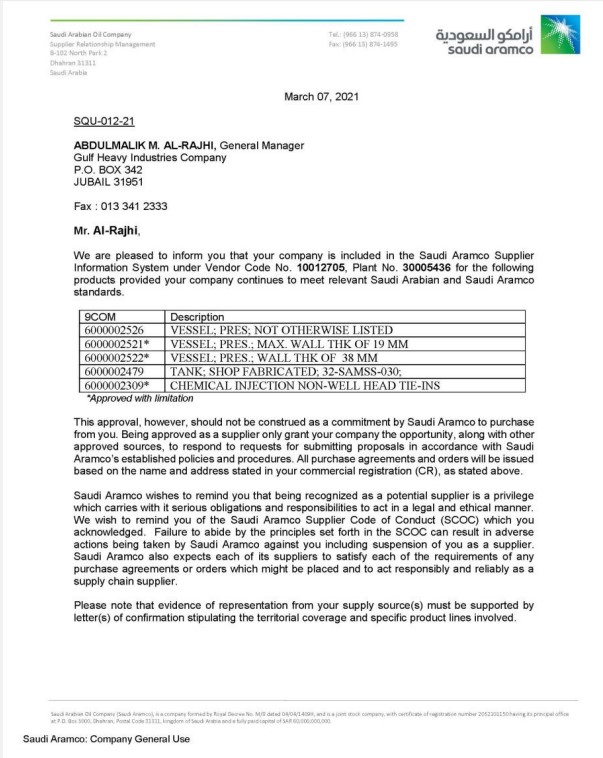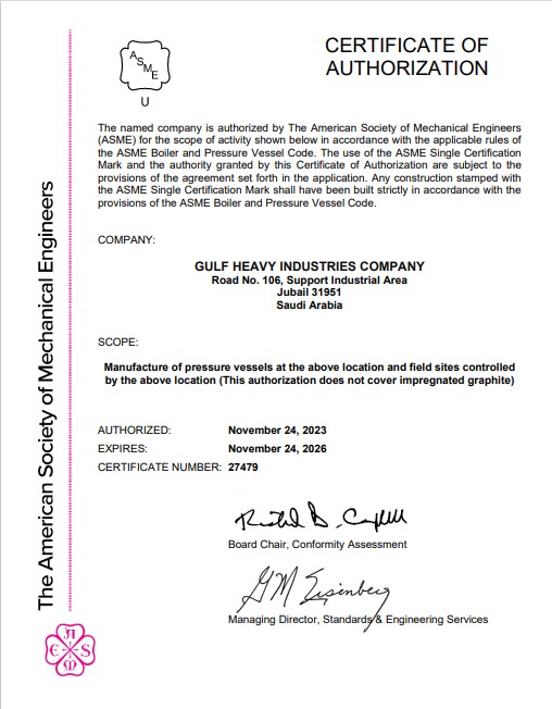 For Manufacture of Pressure Vessels (Division 1) and Field Site Control.