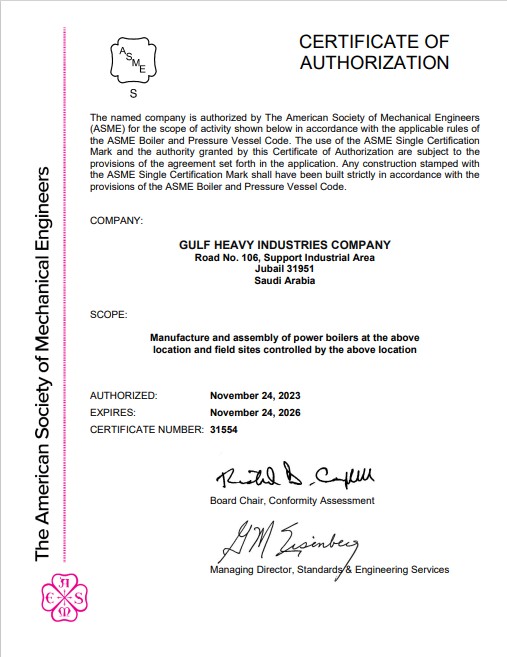 For Manufacture and Assembly of Power Boilers and Field Service Controls.